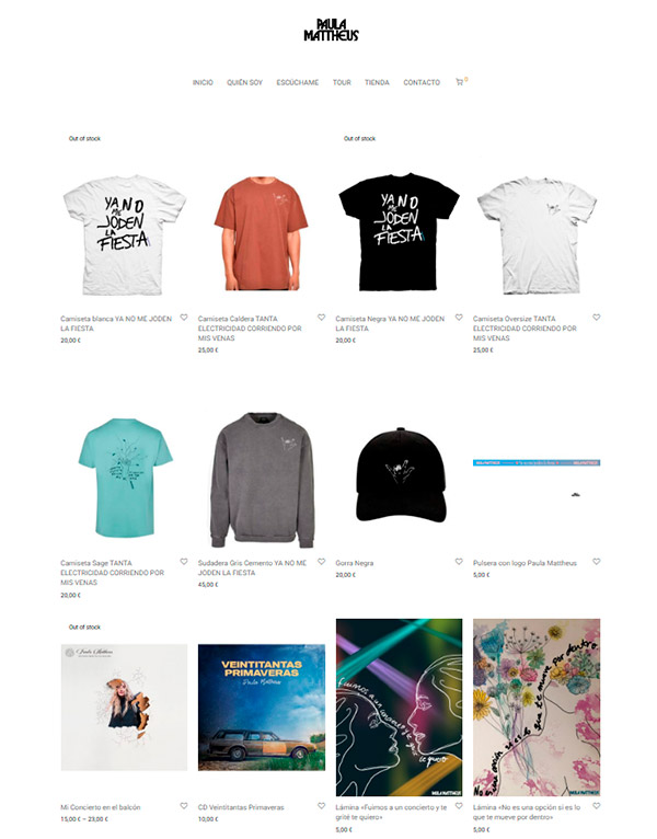 Tienda online oficial: Desarrollo y operación del ecommerce de Paula Mattheus: catálogo, fichas de producto, pasarela de pago segura y soporte postventa.